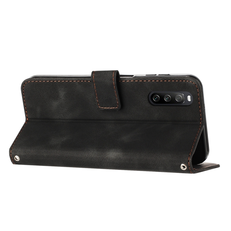 Funda de Cuero para Sony Xperia 10 V (2023) con Cordón (Negro)