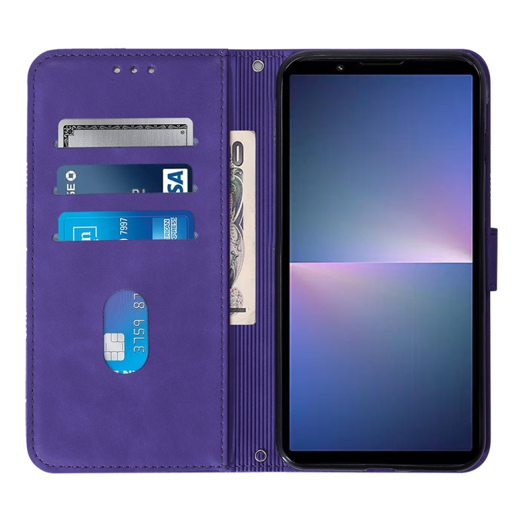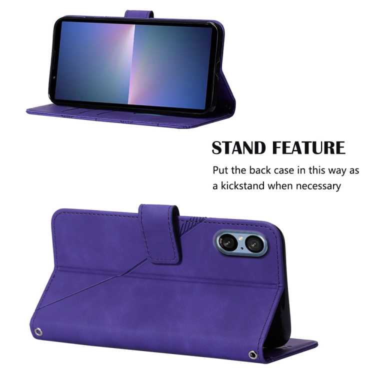 Funda de Cuero para Sony Xperia 5 V Crossbody con Tapa En Relieve 3D (Púrpura)
