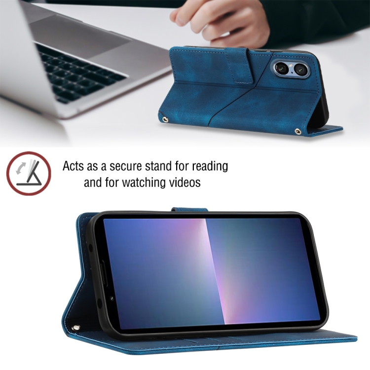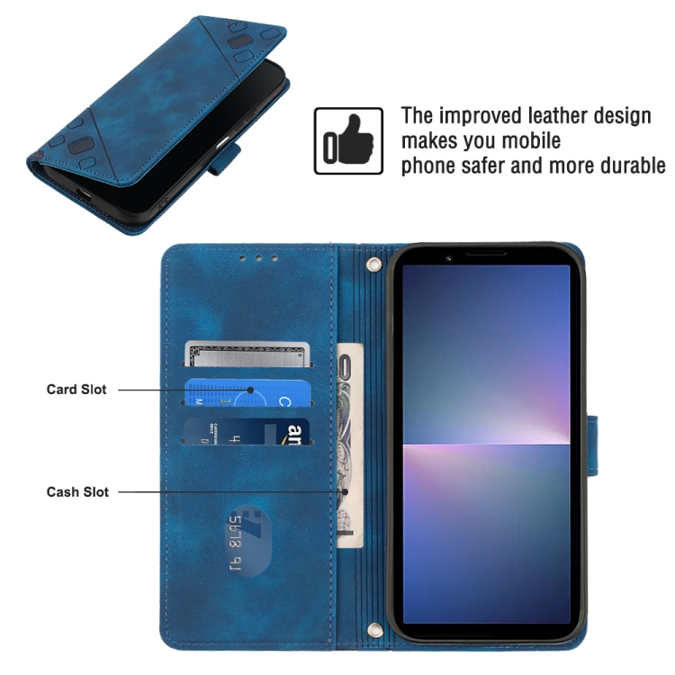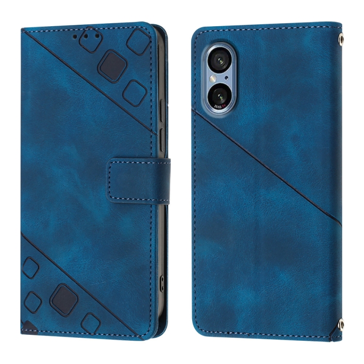 Funda de Cuero para Sony Xperia 5 V con Relieve y Sensación de Piel (Azul)