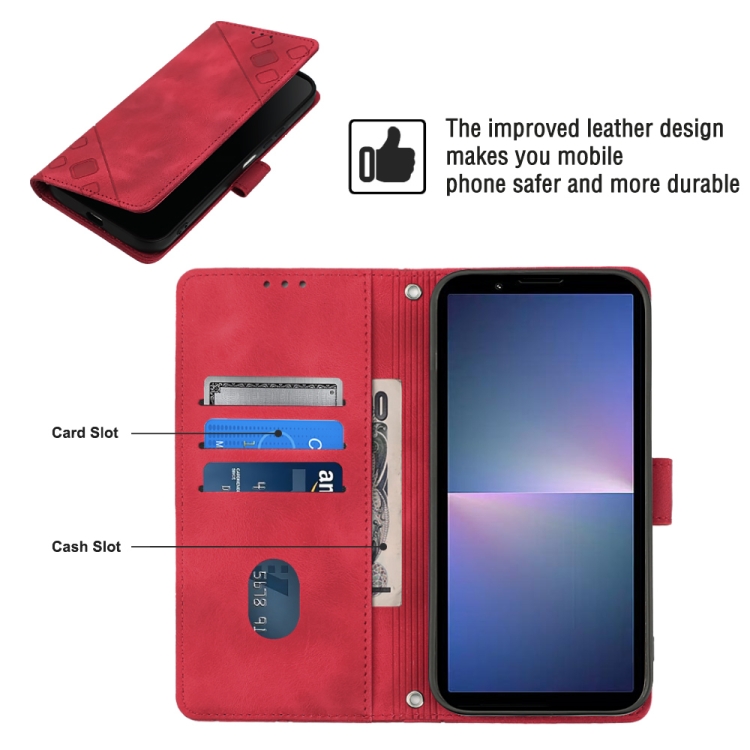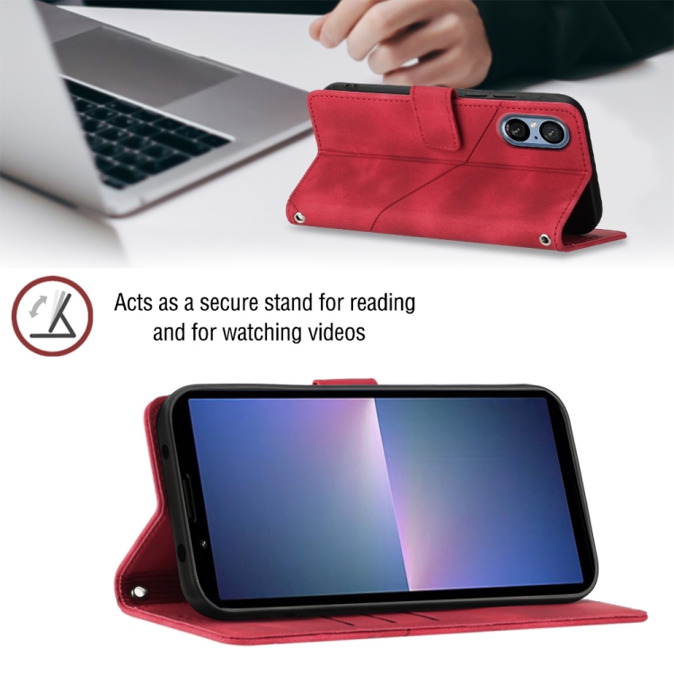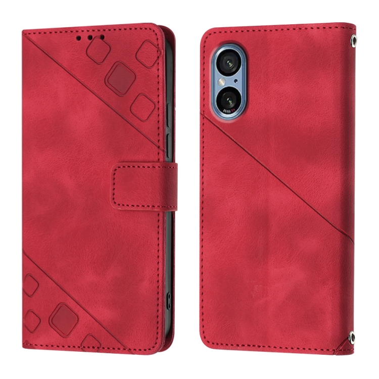 Funda de Cuero para Sony Xperia 5 V con Relieve y Sensación de Piel (Rojo)