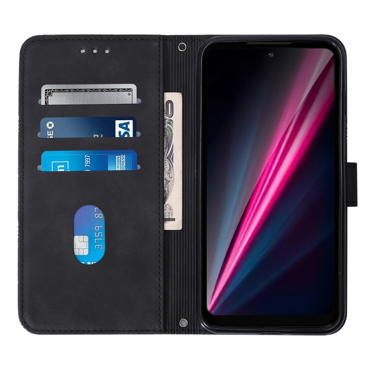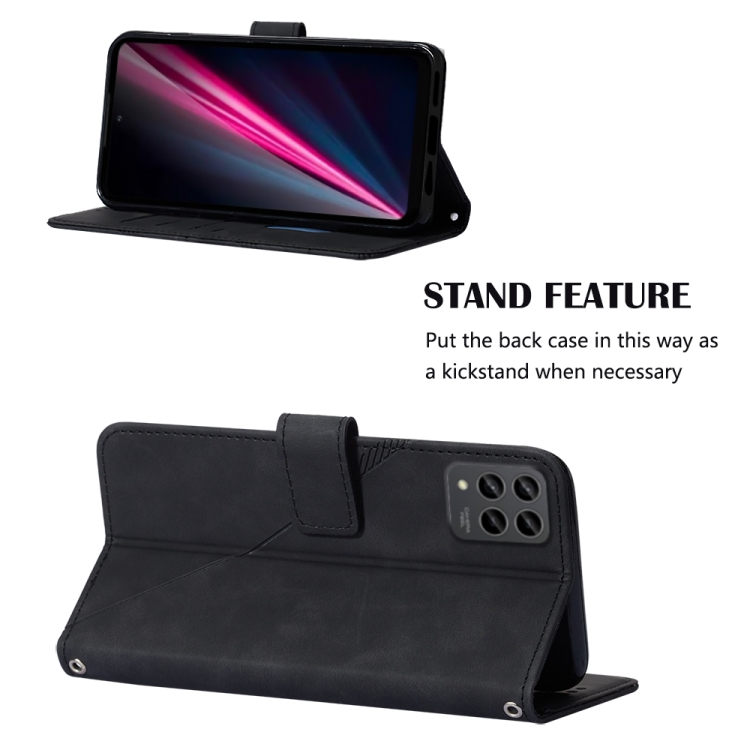 Funda de Cuero con Tapa para T-Mobile Revvl 6 Pro 5G Crossbody 3D (Negro)