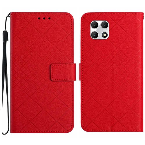 Funda de Cuero para T-Mobile Revvl 7 5G con Textura de Rejilla Rómbica (Rojo)