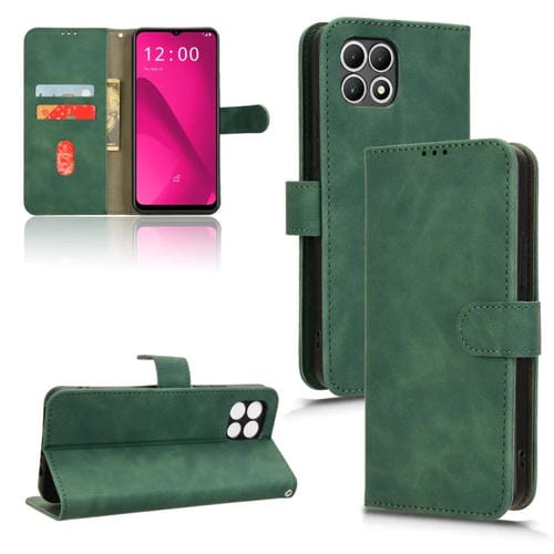 Funda de Cuero con Tapa Magnética para T-Mobile Revvl 7 5G (Verde)