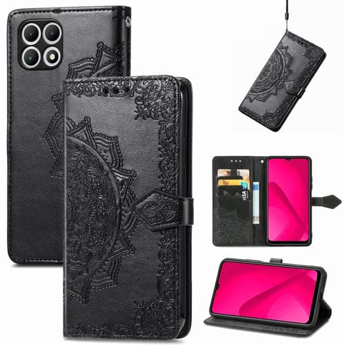 Funda para Teléfono T-Mobile T Phone 2 Pro 5G Cuero con Relieve Flor de Mandala (Negro)