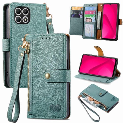 Funda de Cuero para T-Mobile T Phone 2 Pro 5G Love Zipper Lanyard (Verde)