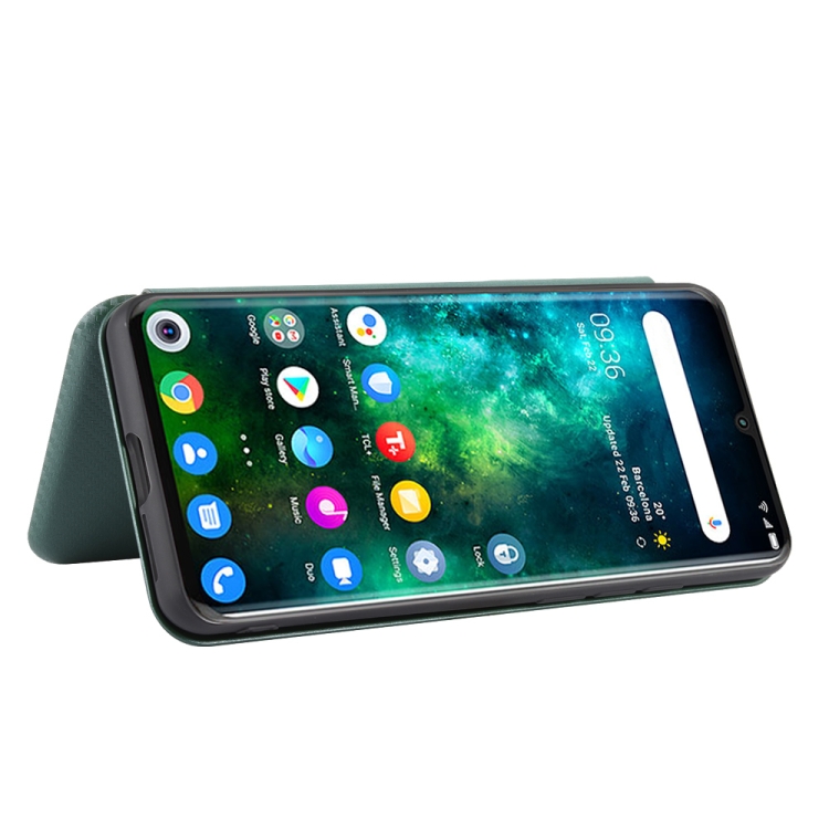 Funda de Cuero para TCL 10 Pro con Tapa Magnética Horizontal y Textura Fibra de Carbono TPU + PC + PU con Ranura para Tarjeta