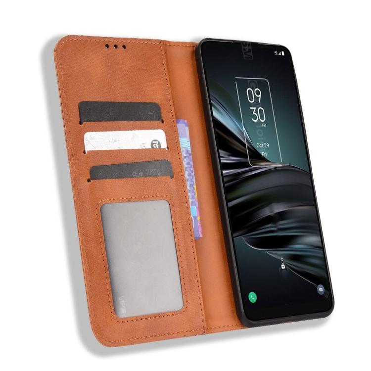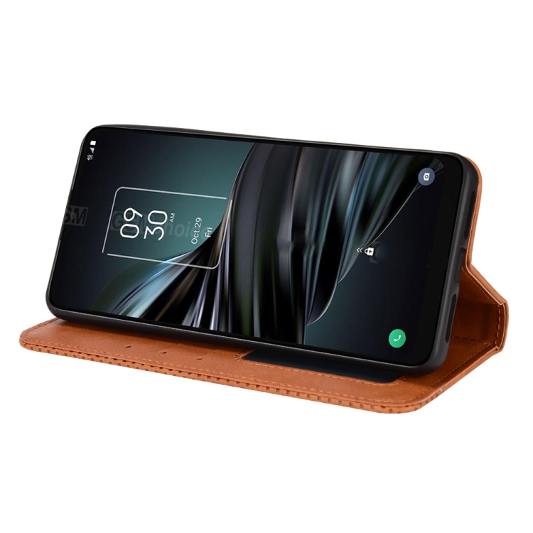 Funda para TCL 20 Xe con Hebilla Magnética y Textura Retro de Cuero (Marrón)