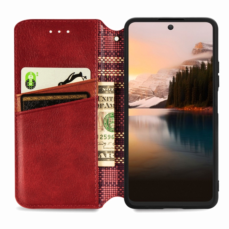 Funda de Cuero Magnético para TCL 40 Nxtpaper 5G Cubic Grid (Rojo)