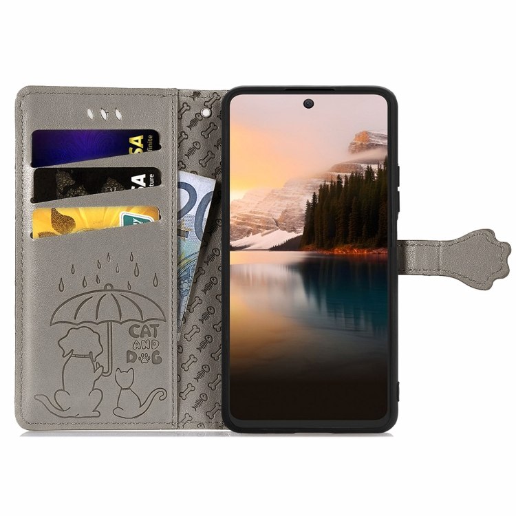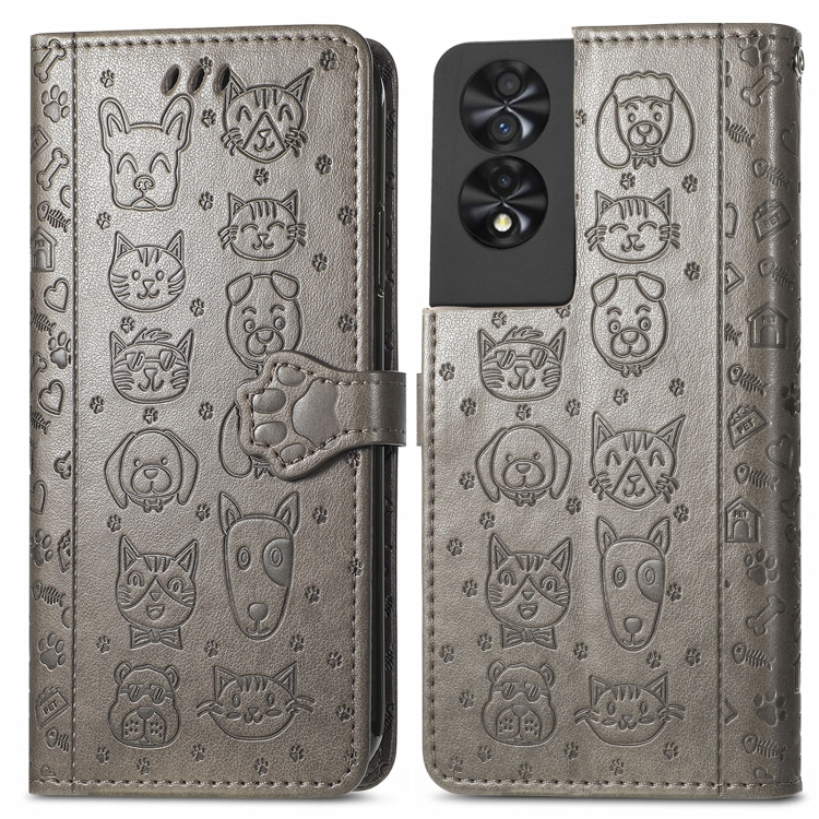 Funda para TCL 40 Nxtpaper 5G de Cuero con Relieve Perros y Gatos (Gris)