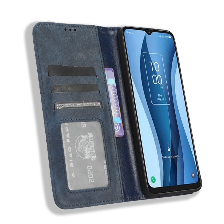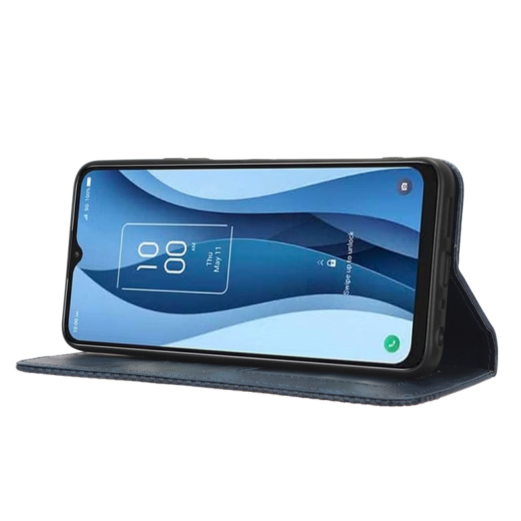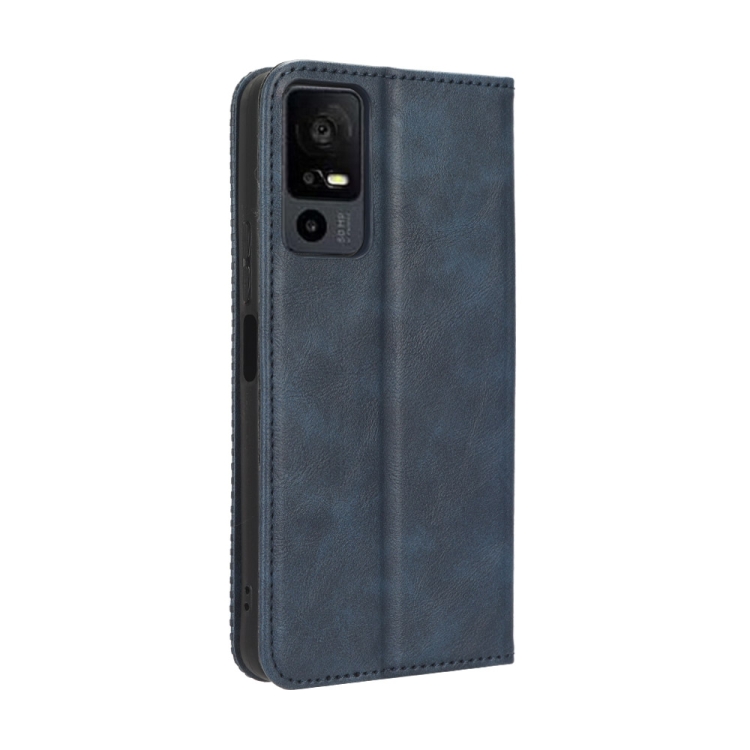 Funda de Cuero para TCL 40 XL con Hebilla Magnética y Textura Retro (Azul)