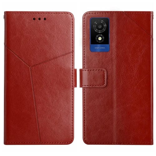 Funda de Cuero para TCL 502 con Tapa y Patrón en Forma de Y (Marrón)
