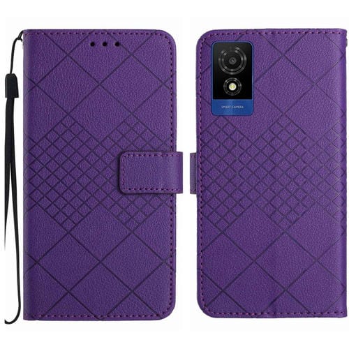 Funda de Teléfono TCL 502 Cuero Textura Rejilla Rómbica (Púrpura)