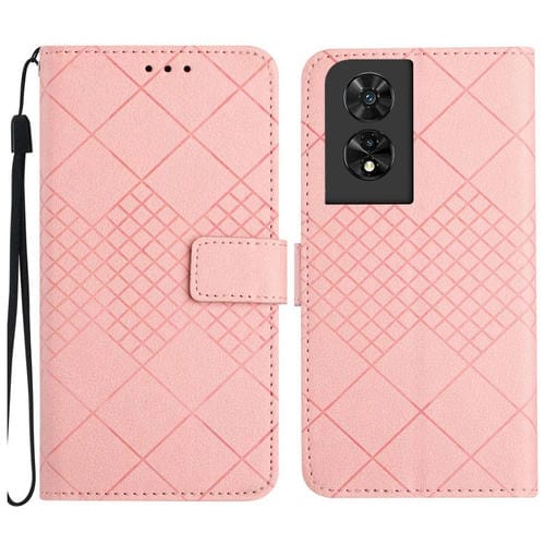 Funda de Cuero para TCL 505 con Textura de Rejilla Rómbica (Rosa)