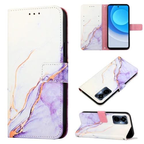 Funda de Cuero para Tecno Camon 19 Pro 5G Pt003 con Tapa y Patrón Mármol (Blanco Púrpura)