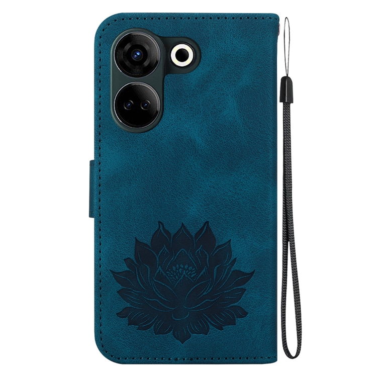 Funda de Cuero para Tecno Camon 20 y Camon 20 Pro 4G con Relieve de Loto (Azul Oscuro)