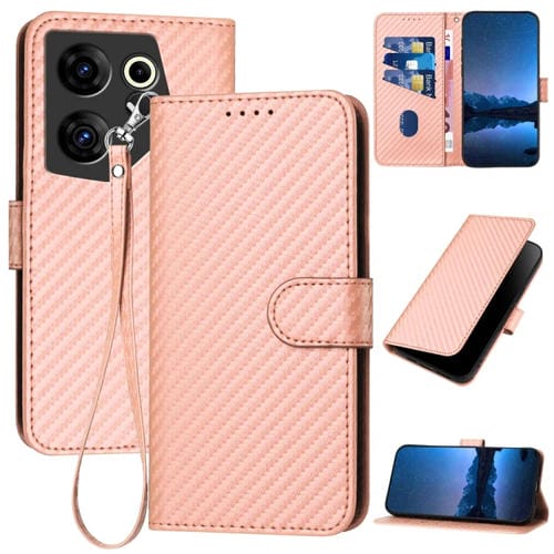 Funda de Cuero para Tecno Camon 20 Premier Yx0070 con Hebilla de Fibra de Carbono y Cordón (Rosa)