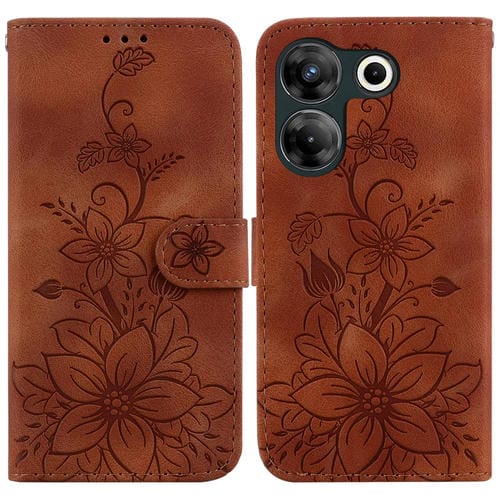 Funda de Cuero para Tecno Camon 20 Pro 5G Lily en Relieve (Marrón)