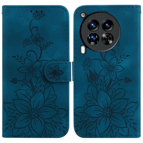 Funda de Cuero para Tecno Camon 30 Premier 5G Lily en Relieve (Azul Oscuro)