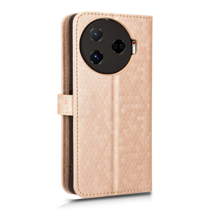Funda de Cuero para Tecno Camon 30 Pro 5G con Textura de Punto de Panal (Dorado)
