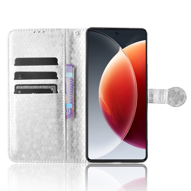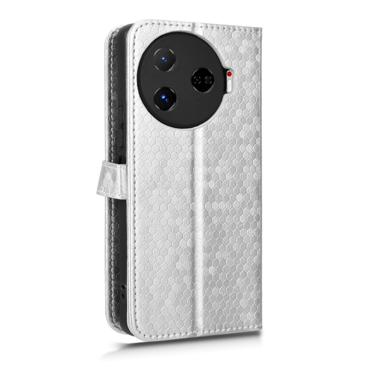 Funda de Cuero para Tecno Camon 30 Pro 5G con Textura de Punto de Panal (Plata)