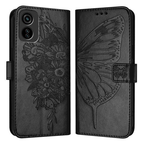Funda de Cuero para Tecno Pop 6C y Itel A18 con Mariposa en Relieve (Negro)