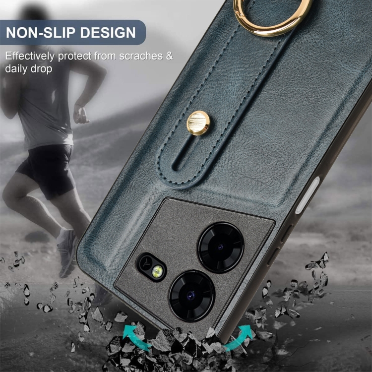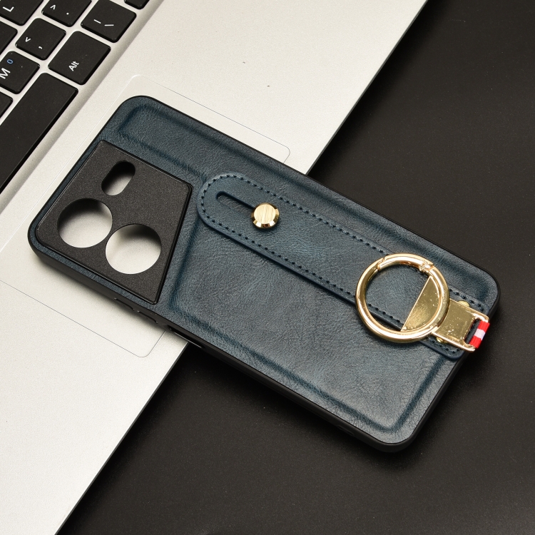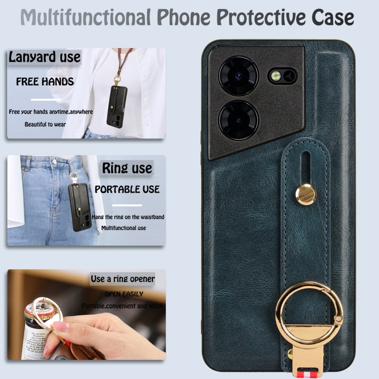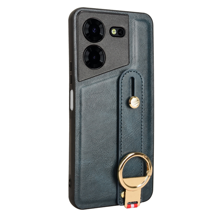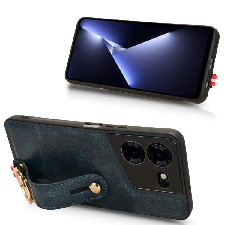 Funda Trasera de Cuero para Tecno Pova 5 Pro con Pulsera (Azul)