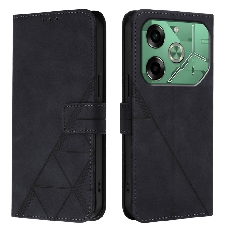 Funda para Tecno Pova 6 4G Crossbody de Cuero con Tapa en Relieve 3D (Negro)