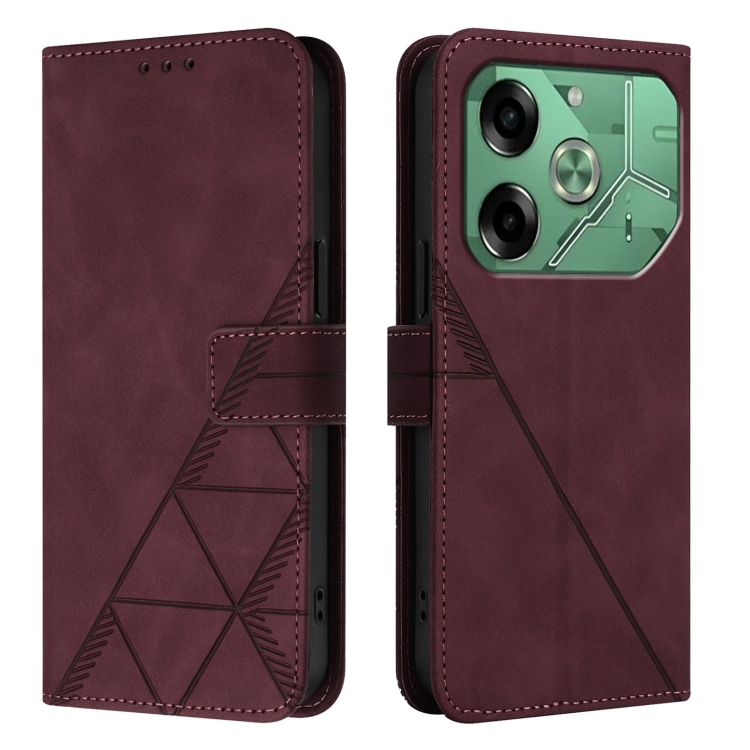 Funda de Cuero para Tecno Pova 6 4G Crossbody con Tapa en Relieve 3D (Rojo Vino)