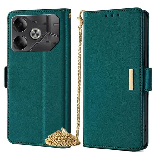 Funda de Cuero para Tecno Pova 6 5G con Cadena Cruzada (Verde)