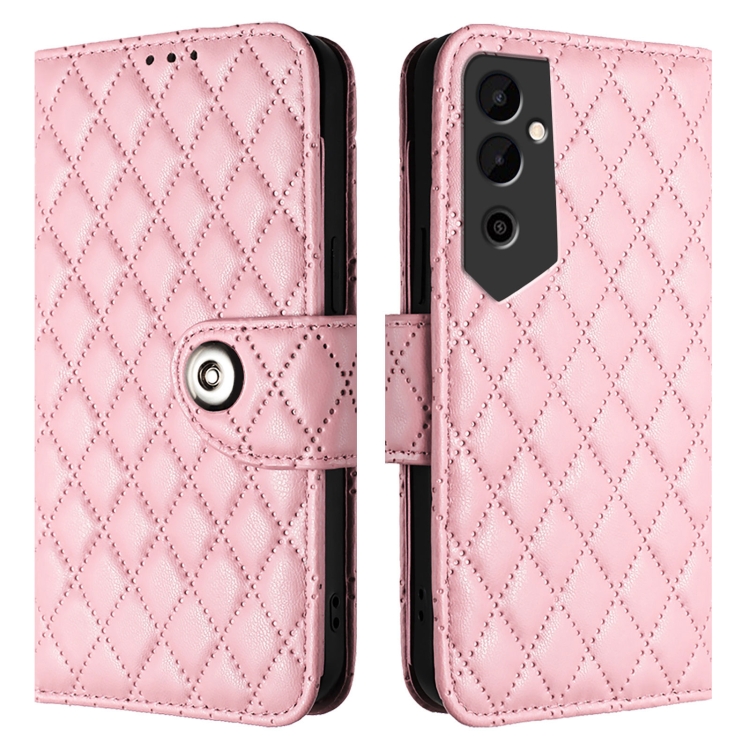 Funda de Cuero para Tecno Pova Neo 2 con Tapa Textura Rombal y Cordón (Rosa)