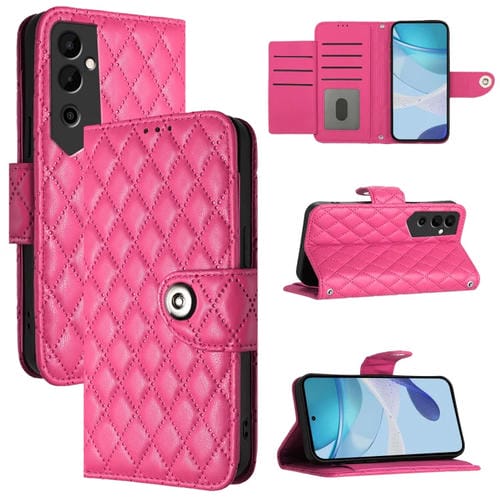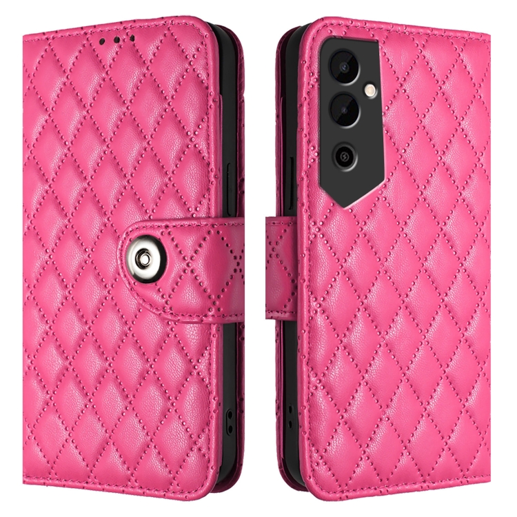 Funda de Cuero con Tapa para Tecno Pova Neo 2 con Textura Rómbica y Cordón (Rojo Rosa)