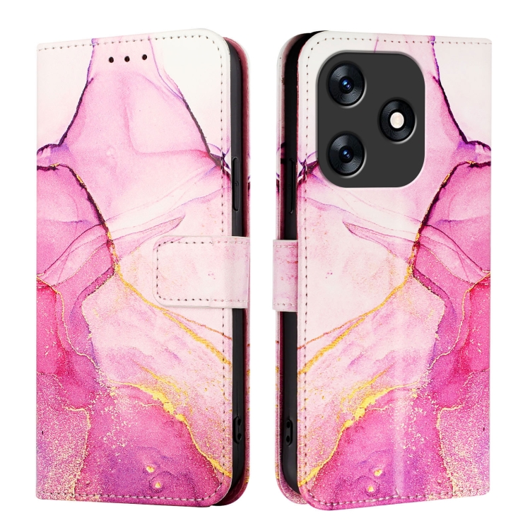 Funda de Cuero con Tapa para Tecno Spark 10 4G Pt003 con Patrón de Mármol (Rosa, Morado y Dorado)