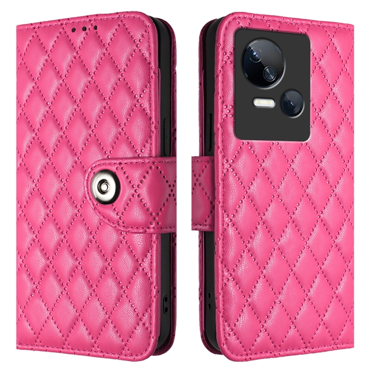 Funda de Cuero para Tecno Spark 10 5G con Tapa, Textura Romboidal y Cordón (Rojo Rosa)