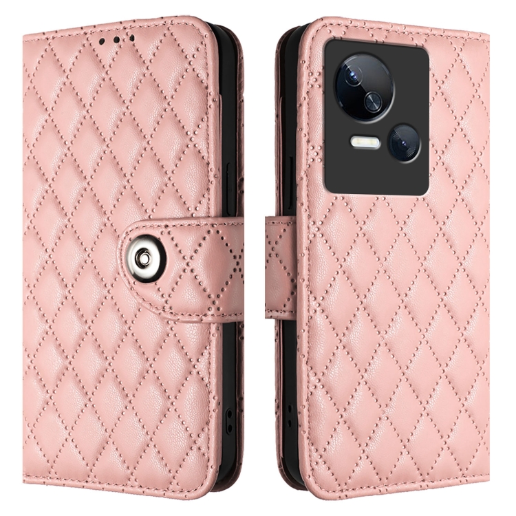 Funda de Cuero para Tecno Spark 10 5G con Tapa Textura Romboidal y Cordón (Rosa Coral)
