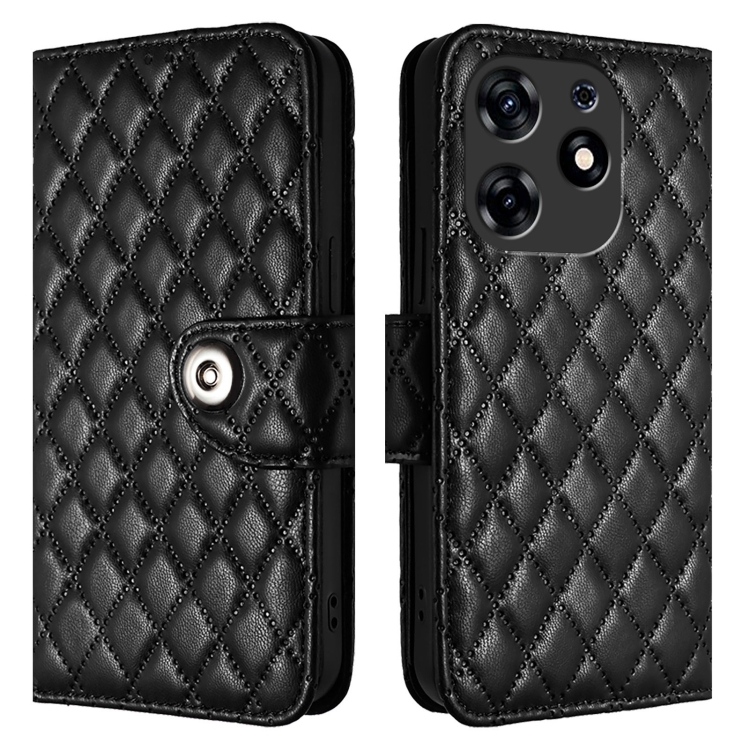 Funda de Cuero para Tecno Spark 10 Pro con Tapa Textura Rombal y Cordón (Negro)