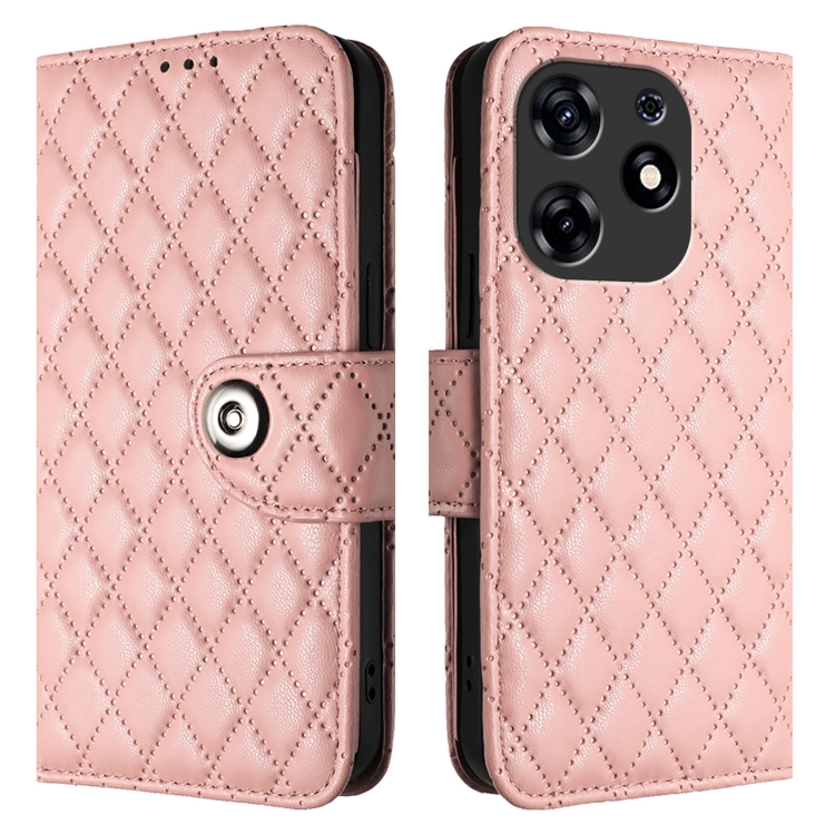 Funda de Cuero para Tecno Spark 10 Pro con Tapa Textura Rombal y Cordón (Rosa Coral)