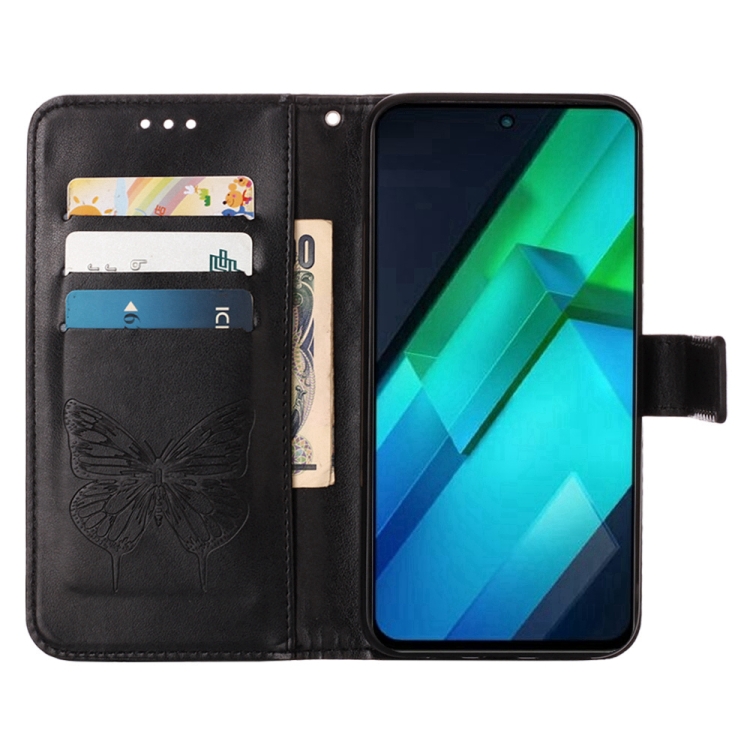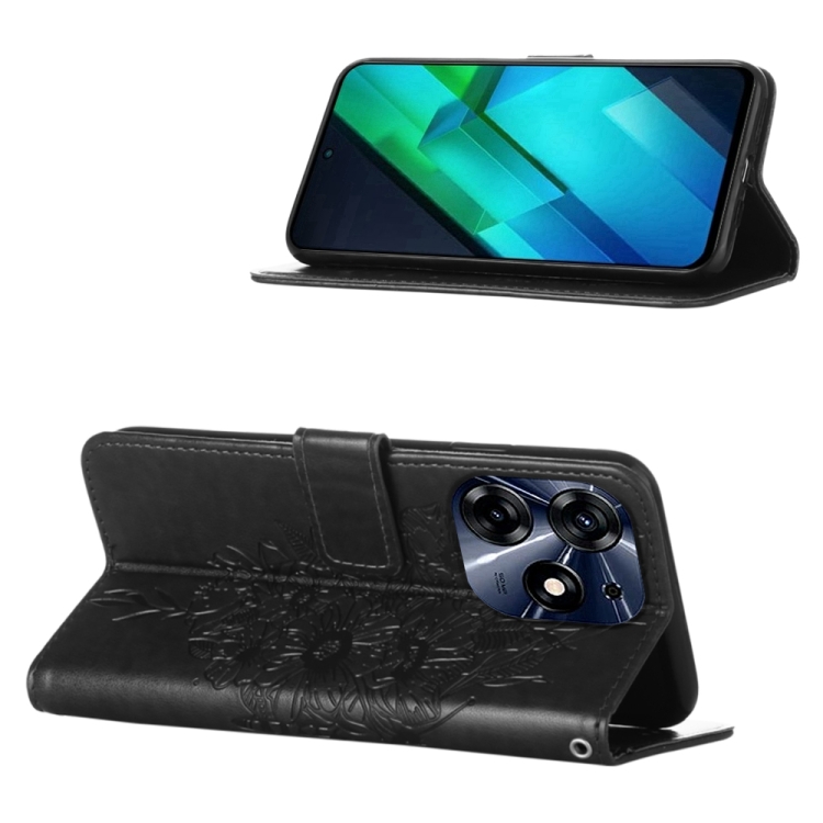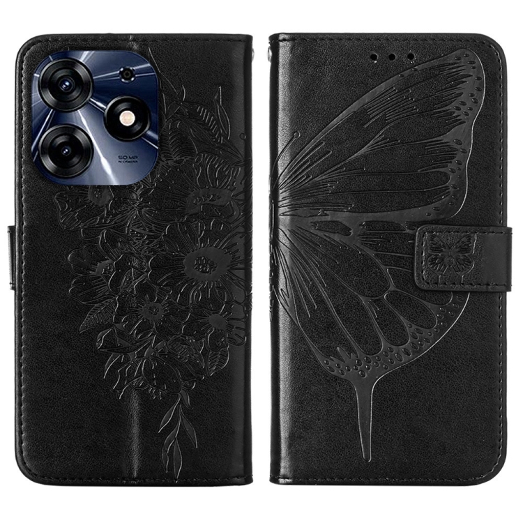 Estuche para Tecno Spark 10 Pro Ki7 de Cuero con Mariposa en Relieve (Negro)