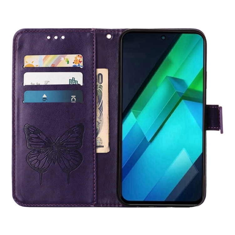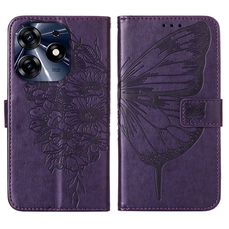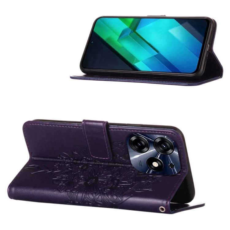 Estuche para Tecno Spark 10 Pro Ki7 de Cuero con Mariposa en Relieve (Púrpura Oscuro)