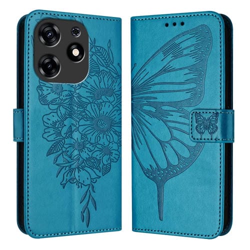 Funda de Cuero para Tecno Spark 10 Pro Magic Magenta con Mariposa en Relieve (Azul)