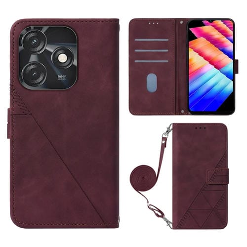 Funda de Cuero con Tapa para Tecno Spark 10C / K15Q Crossbody 3D (Rojo Vino)