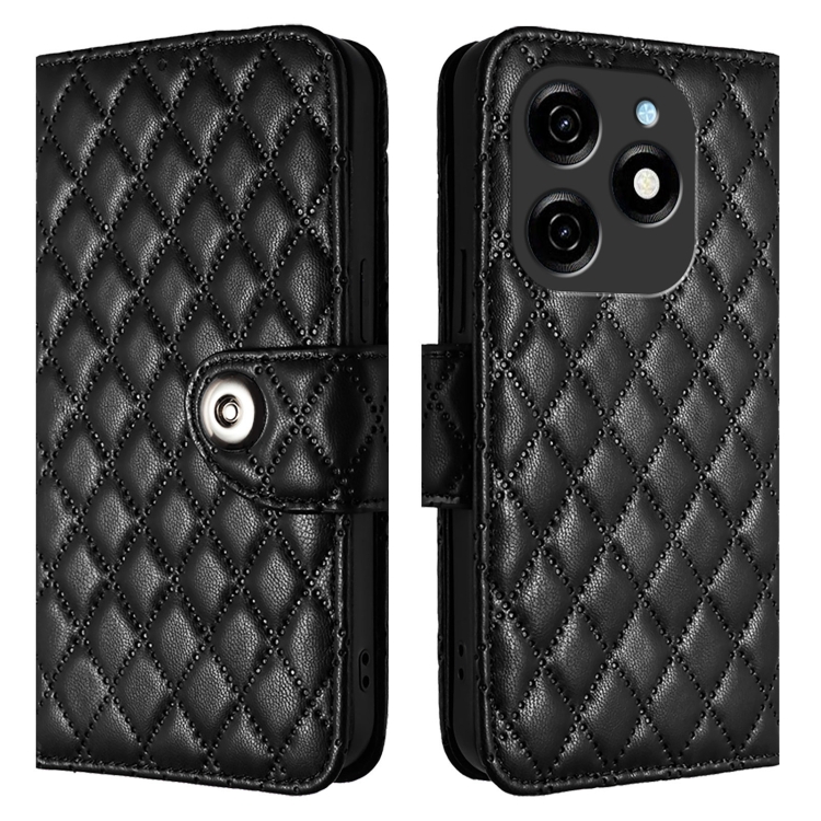 Funda de Cuero para Tecno Spark 20 con Tapa Textura Rombal y Cordón (Negro)