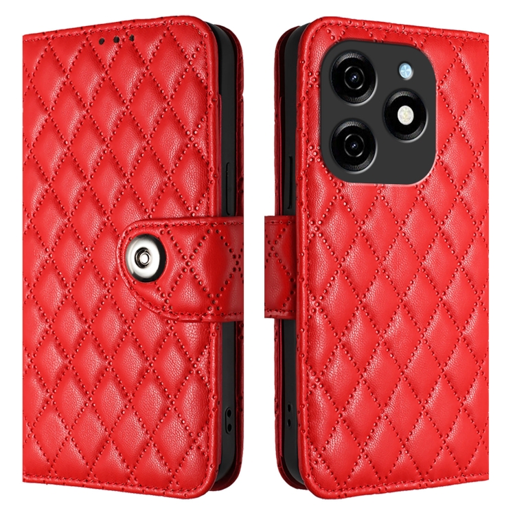 Funda de Cuero con Tapa para Tecno Spark 20 con Textura Rombal y Cordón (Rojo)
