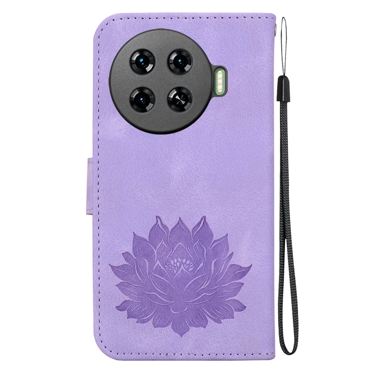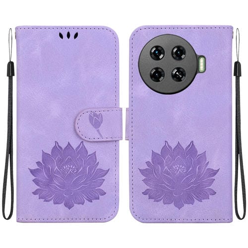 Funda de Cuero para Tecno Spark 20 Pro+ con Relieve de Loto (Púrpura)