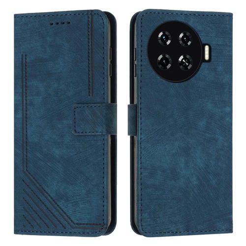 Funda de Cuero para Tecno Spark 20+ Skin Feel con Patrón de Rayas y Cordón Largo (Azul)