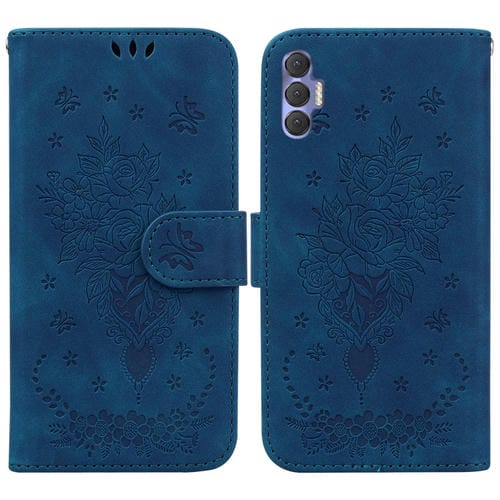 Funda para Tecno Spark 8 Pro Butterfly Rose Foothip en Relieve de Cuero (Azul)