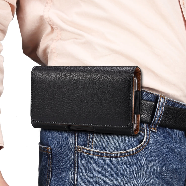 Funda para Teléfono 6,2-6,5 Pulgadas con Textura Litchi, Clip de Hierro y Hebilla Trasera (Negro)