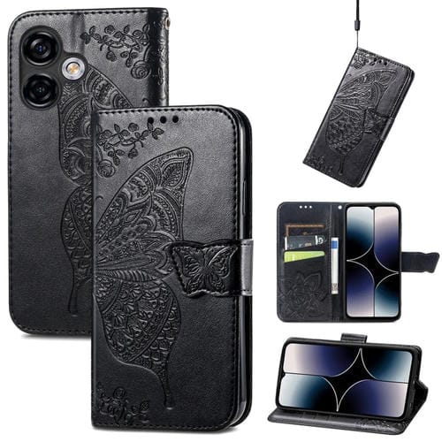 Estuche para Ulefone Note 16 Pro Butterfly Love Flower de Cuero En Relieve (Negro)