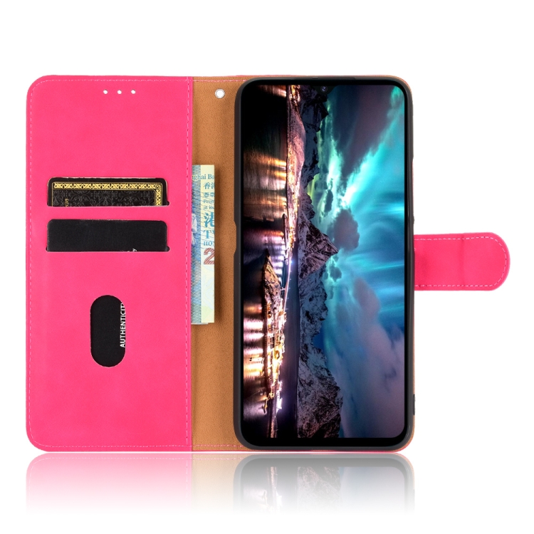 Funda Cuero Pu Umidigi A7S Textura Piel Becerro Abatible Horizontal con Hebilla Magnética y Soporte (Rosa Roja)