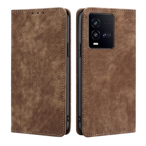 Para Vivo Iqoo 10 Rfid Funda de Teléfono de Cuero Magnético con Cepillo Antirrobo (Marrón)