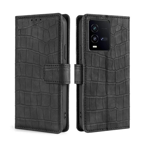 Para Vivo Iqoo 10 Skin Feel Cocodrilo Cierre Magnético Funda de Cuero para Teléfono (Negro)